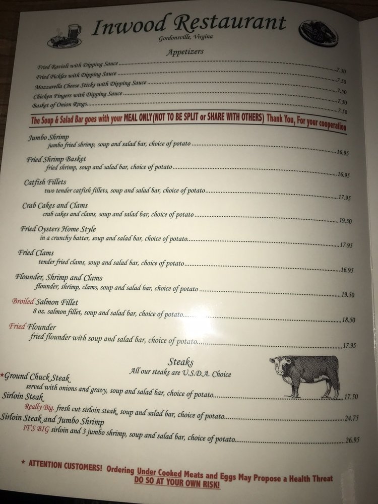 Inwood Restaurant, located in Gordonsville, VA, is a delightful breakfast and brunch spot with a wide array of American cuisine. Known for its exceptional service and generous portions, customers rave about the delicious food and friendly staff. The menu features a diverse selection, including a tempting salad bar, flavorful ham and eggs, mouth-watering blueberry pancakes, and outstanding breakfast potatoes. With options for vegetarians, ample seating for groups, and even outdoor dining available, Inwood Restaurant caters to a variety of preferences. The cozy atmosphere and homestyle cooking create a nostalgic dining experience reminiscent of a bygone era. Whether you're stopping by for a quick bite or a leisurely meal, Inwood Restaurant promises a satisfying and memorable dining experience.